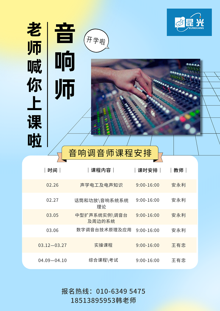 2022年2月第一期《音響調(diào)音師》周末班招生(總第130期)