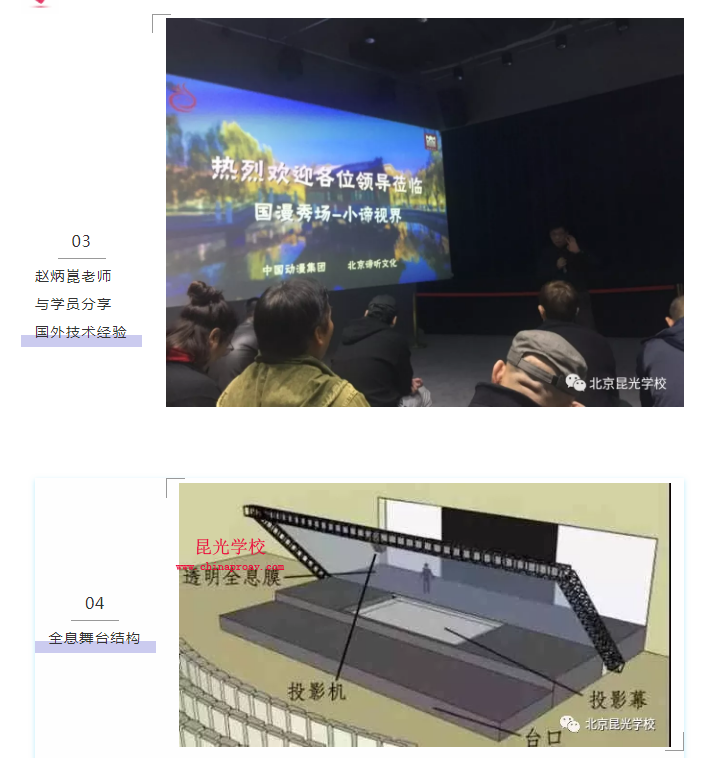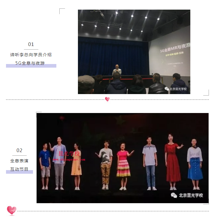 同學(xué)們?cè)诘诙煜挛鐏?lái)到了北京諦聽(tīng)文化傳媒公司,由諦聽(tīng)文化李總向同學(xué)們介紹了國(guó)內(nèi)全息影像技術(shù)發(fā)展概況,之后欣賞了一場(chǎng)由全息影像各種類型互動(dòng)表演的舞臺(tái)節(jié)目片段(AR,MR,5G),劇場(chǎng)演出創(chuàng)新融合與促進(jìn)優(yōu)化產(chǎn)業(yè)發(fā)展。